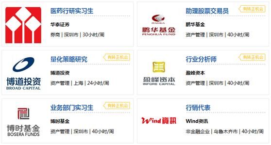 l实习就业:10,000+金融机构客户,每天发布各类实习机会和工作岗位